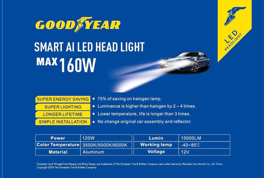 Goodyear Smart AI High Power Dual Color Head Light Led App Controlled 160Watt